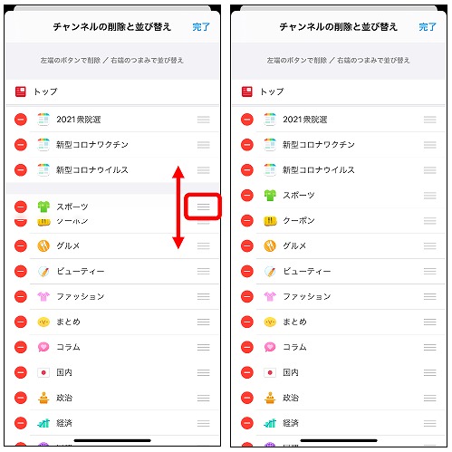 三本線をドラッグすると、ラベルの順番が入れ替えられます。