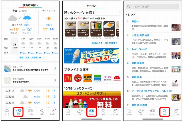 便利な天気やクーポン、検索