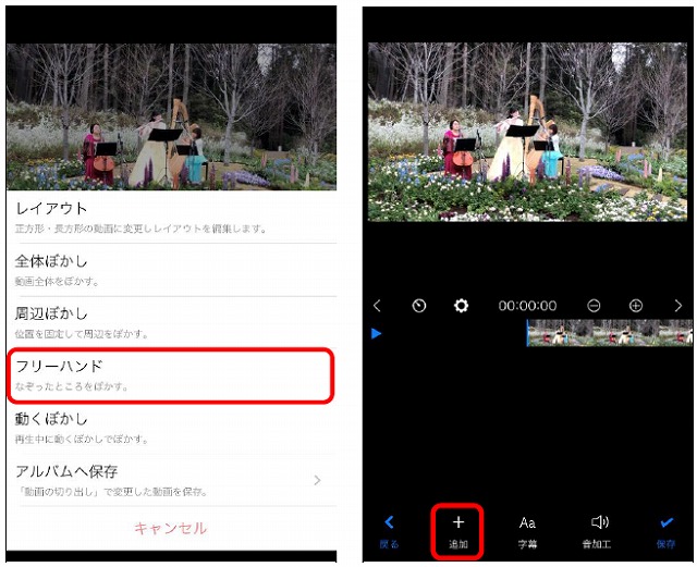 動画を撮ることも多いので、動画のぼかし加工が簡単にできるのはうれしいですね。